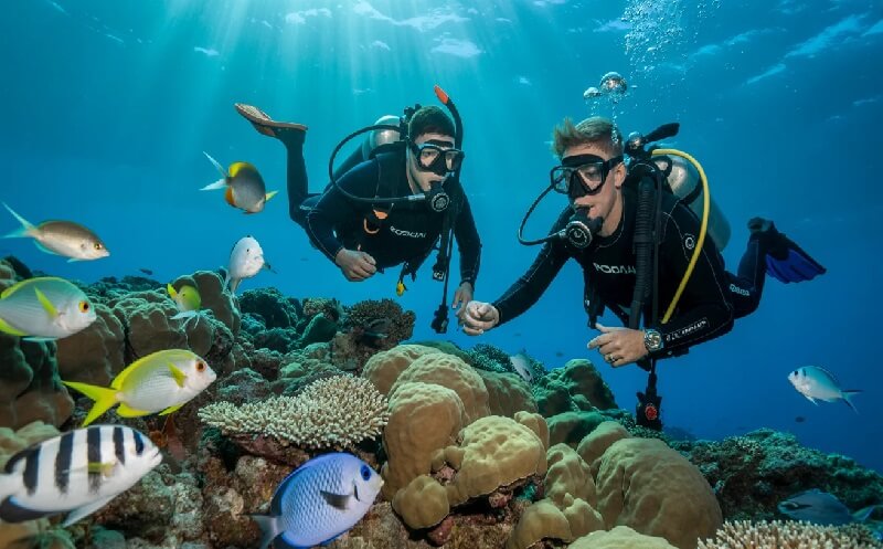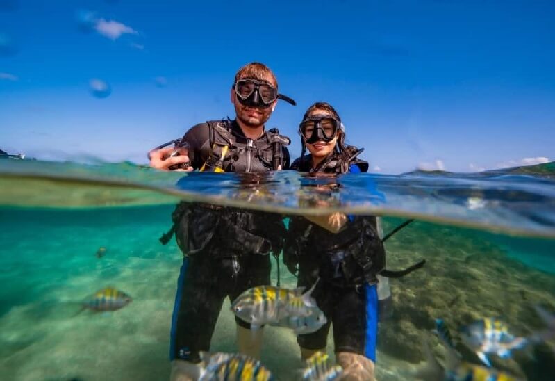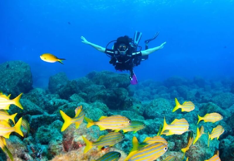 Pontos icônicos como Baía dos Porcos ou Praia do Sueste oferecem mergulhos rasos para novatos e paredes profundas até 40 metros para mergulhadores certificados.
